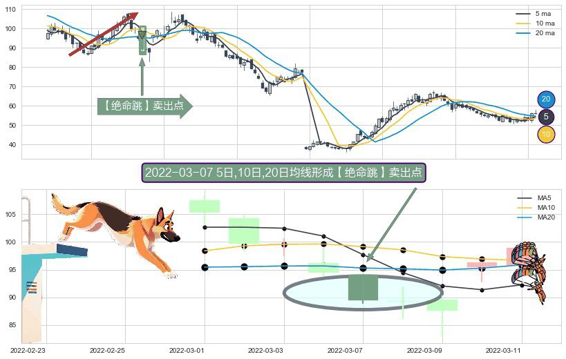 ⚀ 2022-03-07日显现 5日-10日-20日均线 【绝命跳】卖出点 看空信号,后市看跌,卖出