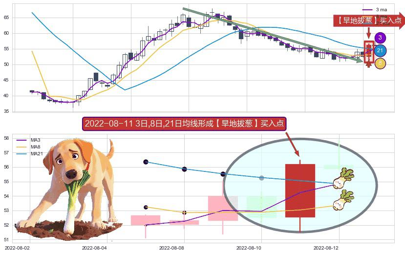 ⚀ 2022-08-11日显现 3日-8日-21日均线 【旱地拔葱】买入点 看多信号,后市看涨,买入