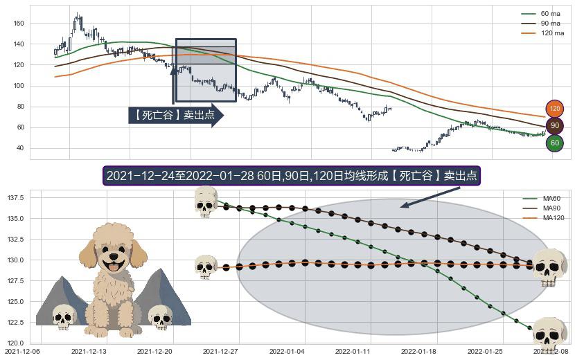 ⚀ 2021-12-27-日至2022-01-28-日显现 60日-90日-120日均线 【死亡谷】卖出点 看空信号,后市看跌,卖出