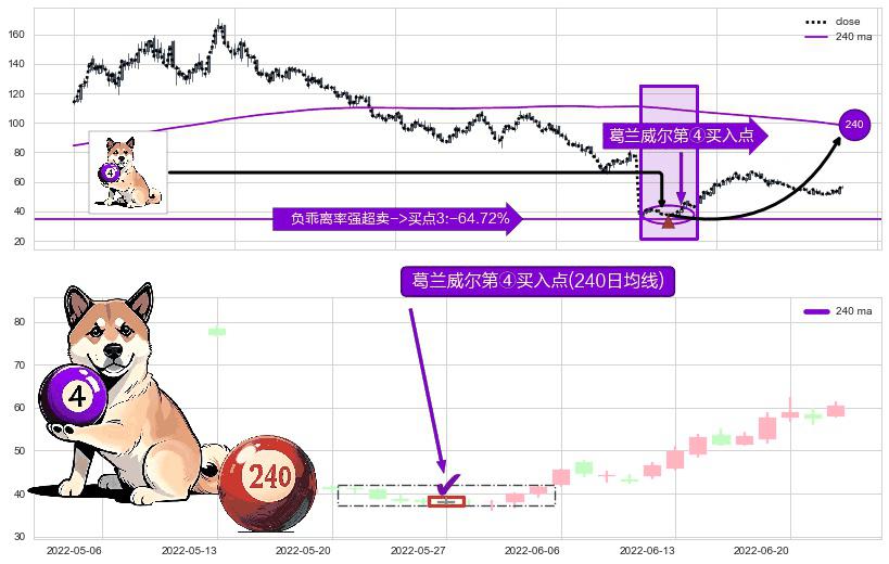 ⚀ 2022-05-27-日显现 葛兰威尔均线 240日均线 第④买入点 下降趋势均值回复的短线反弹信号,后市看涨,买进信号