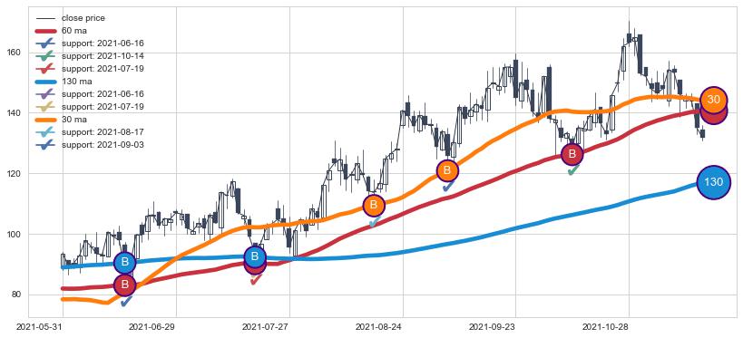 ⚀ 2022-06-13日-2022-07-14日显现 3日-8日-21日均线 【烘云托月】买入点 看多信号,后市看涨,买入