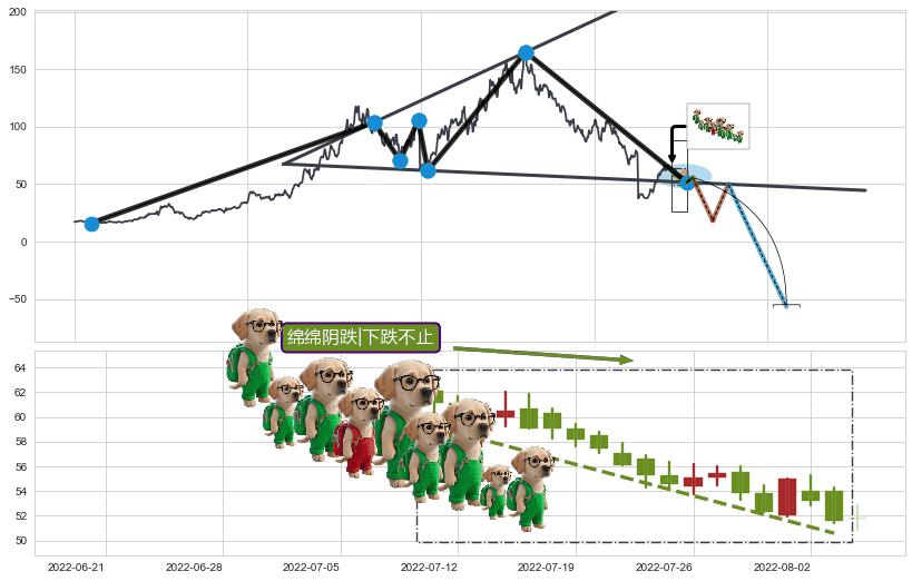 | 10 🅚:下跌两颗星 | 下跌三颗星 ➕ 📐:扩散三角反转猜想突破点临近,临近关键支撑位,预期下沉突破下跌 ☞ 看空信号 ⇥ 【🅚线】交织【图形】⇥ 综合量化分数: 48 | > |