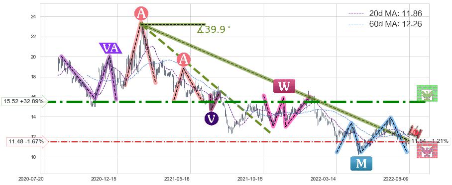 ➣ 【已确认突破】最后价格:11.68与最小【整理】第一目标价格→(2022-09-19: 7.12 )相较: 下跌空间【中等】