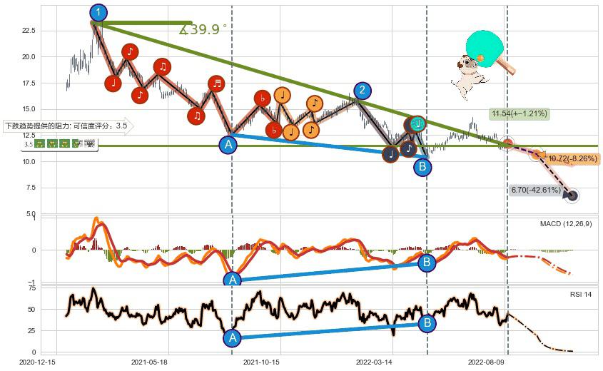 ➢ 预测:2022-09-19,【试探阻力】稳定目前下跌趋势的前提下,预测价格:10.72