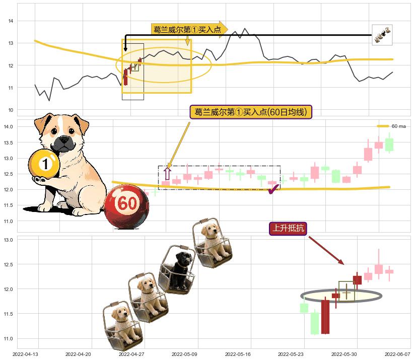 | 2 🅚:上涨两颗星 | 上涨三颗星 ➕ 🎢:葛兰威尔第①买入点买入点信号形成后,猜想后续下跌趋势反转上涨趋势(均值回复) ☞ 看多信号 ⇥ 【均线】交织【🅚线】⇥ 综合量化分数: 51 | > |