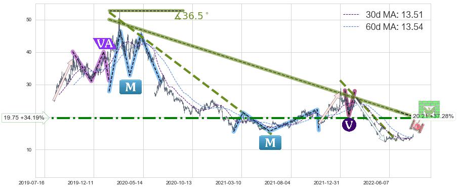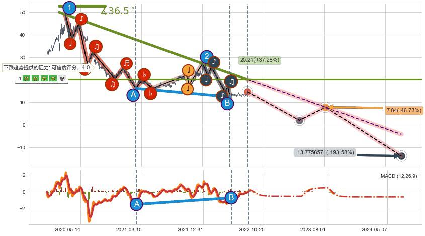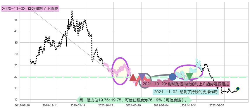 ♘ 阻力价格位19.75,可信任强度76.19%,距离最后交易2022-08-12形成的收盘价格14.72相差 +34.19%