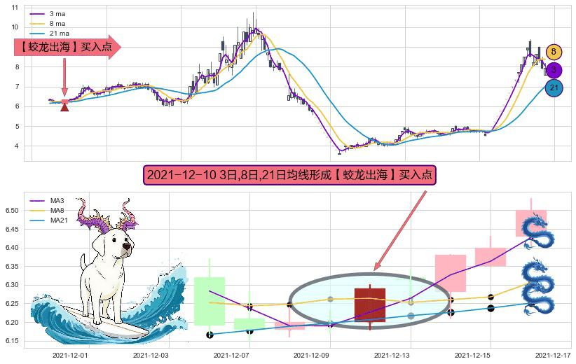 ⚀ 2021-12-10日显现 3日-8日-21日均线 【蛟龙出海】买入点 看多信号,后市看涨,买入