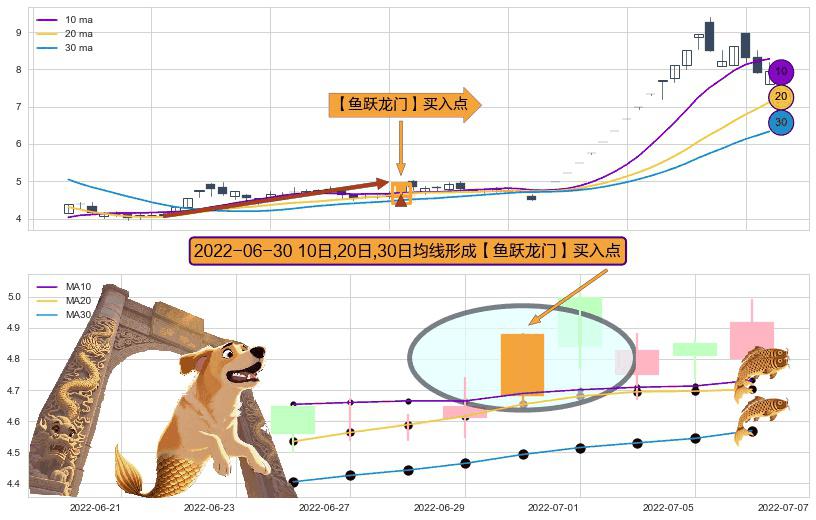 ⚀ 2022-06-30日显现 10日-20日-30日均线 【鱼跃龙门】买入点 看多信号,后市看涨,买入