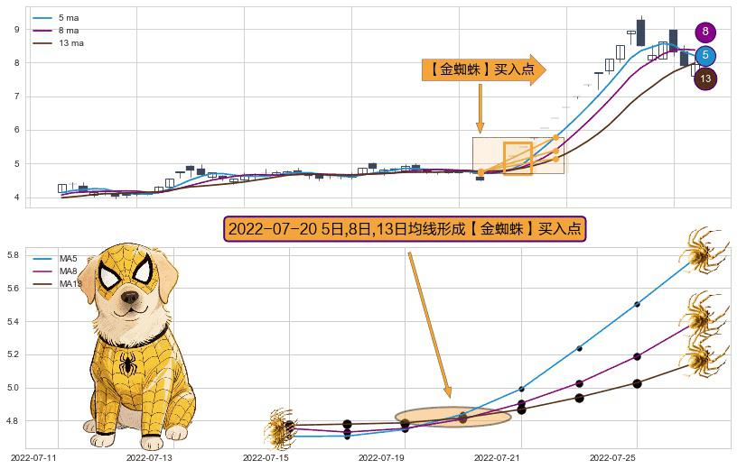 ⚀ 2022-07-20日显现 5日-8日-13日均线 【金蜘蛛】买入点 看多信号,后市看涨,买入