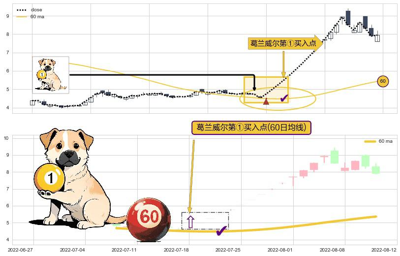 ⚀ 2022-07-18-日显现 葛兰威尔均线 60日均线 第买①入点 走势反转见底信号,后市看涨,买进信号