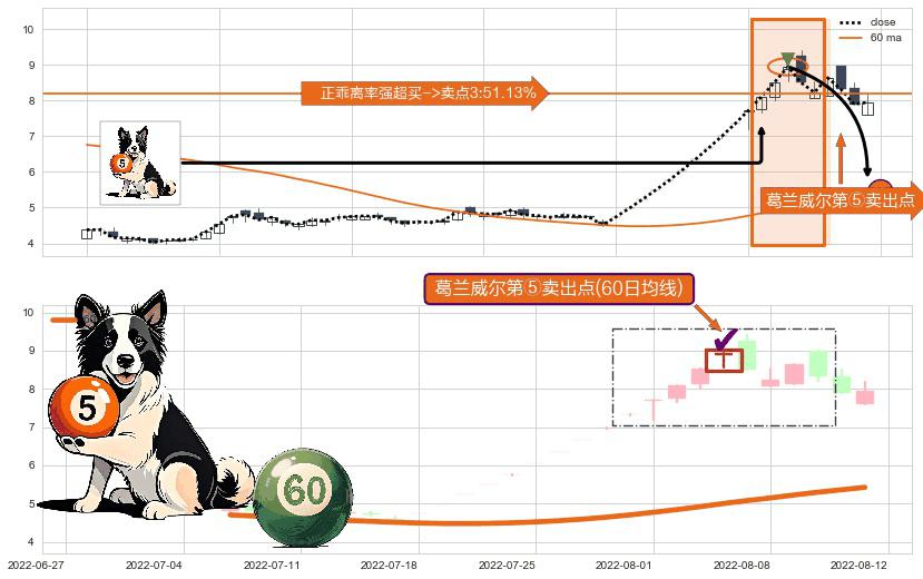 ⚀ 2022-08-04-日显现 葛兰威尔均线 60日均线 第⑤卖出点 上升趋势均值回复的短线回落信号,后市看跌,卖出信号