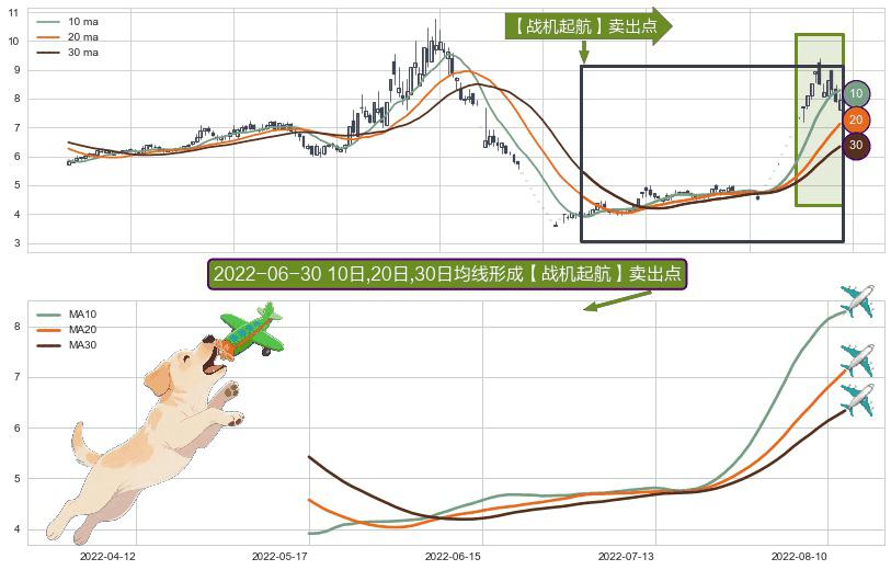 ⚀ 2022-05-17日-2022-08-12日显现 10日-20日-30日均线 【战机起航】卖出点 看空信号,后市看跌,卖出