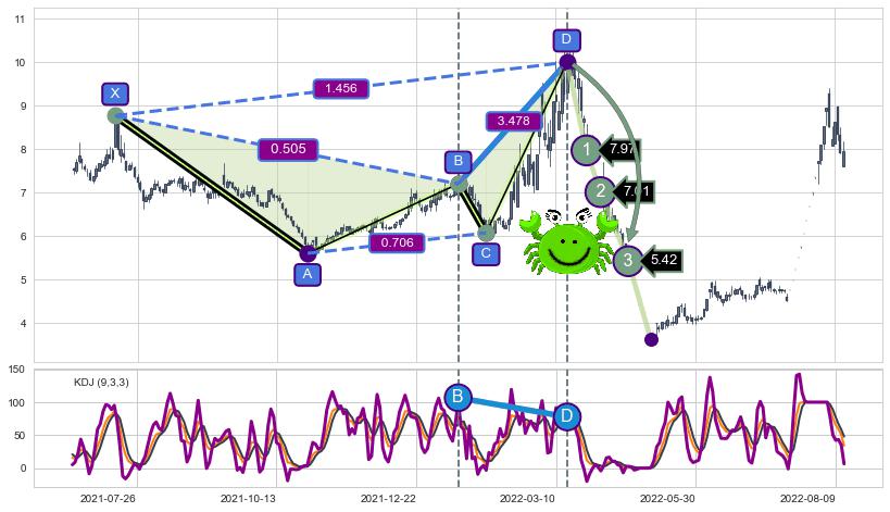 ➣ 已完成【螃蟹】形态起点X: 2021-07-14, 终点D: 2022-03-16, 共163交易日