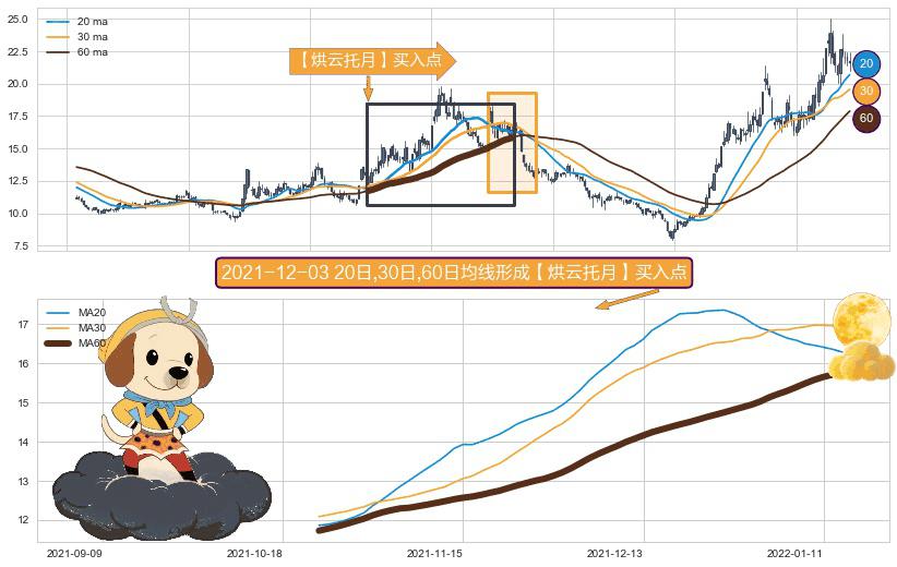 形态多维评估: ⚀ 2021-10-22日-2022-01-14日显现 20日-30日-60日均线 【烘云托月】买入点 看多信号,后市看涨,买入
