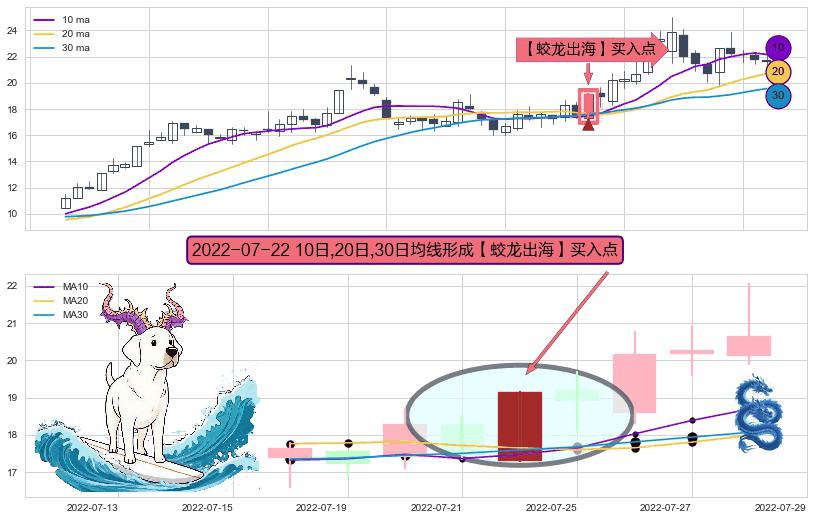 形态多维评估: ⚀ 2022-07-22日显现 10日-20日-30日均线 【蛟龙出海】买入点 看多信号,后市看涨,买入