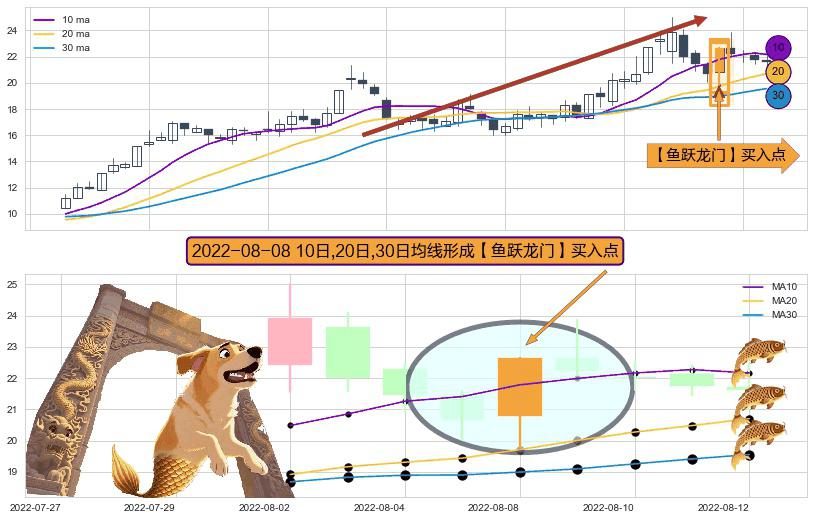 形态多维评估: ⚀ 2022-08-08日显现 10日-20日-30日均线 【鱼跃龙门】买入点 看多信号,后市看涨,买入