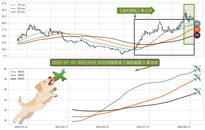 形态多维评估: ⚀ 2022-05-19日-2022-08-12日显现 30日-60日-90日均线 【战机起航】卖出点 看空信号,后市看跌,卖出