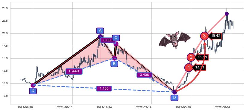 ➣ 已达成看涨【蝙蝠】形态全部的预期目标