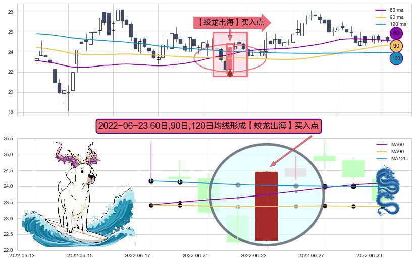 ⚀ 2022-06-23日显现 60日-90日-120日均线 【蛟龙出海】买入点 看多信号,后市看涨,买入