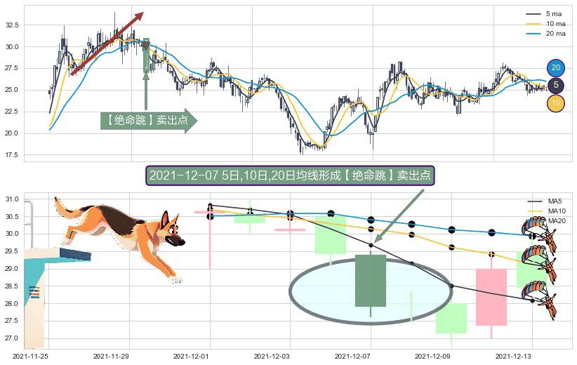 ⚀ 2021-12-07日显现 5日-10日-20日均线 【绝命跳】卖出点 看空信号,后市看跌,卖出