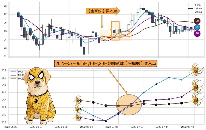 ⚀ 2022-07-06日显现 5日-10日-20日均线 【金蜘蛛】买入点 看多信号,后市看涨,买入