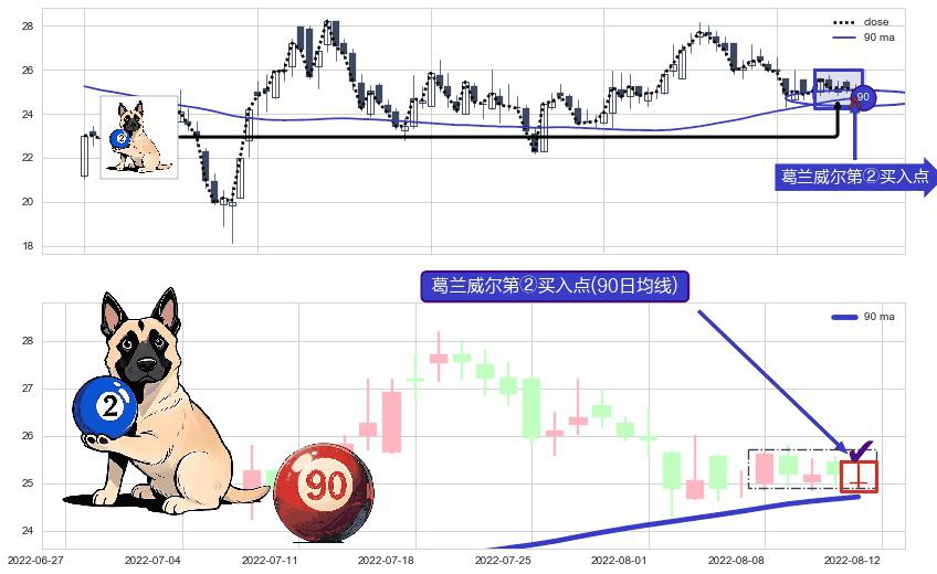 ⚀ 2022-08-12-日显现 葛兰威尔均线 90日均线 第②买入点 上升趋势的中继信号,后市看涨,买进信号