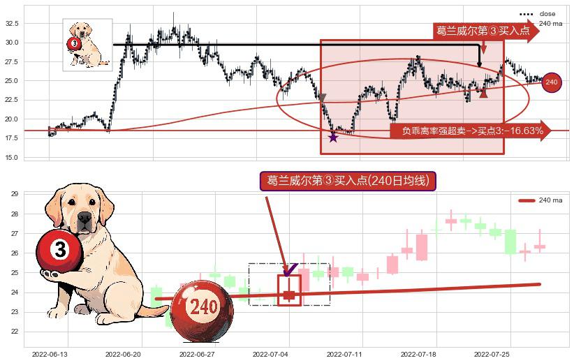 ⚀ 2022-07-04-日显现 葛兰威尔均线 240日均线 第③买入点 上升趋势的中继信号,后市看涨,买进信号