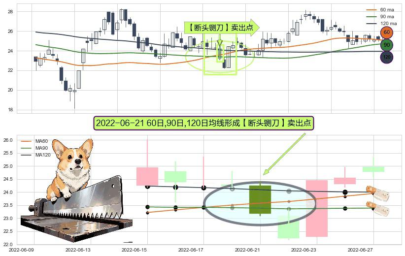 ⚀ 2022-06-21日显现 60日-90日-120日均线 【断头铡刀】卖出点 看空信号,后市看跌,卖出