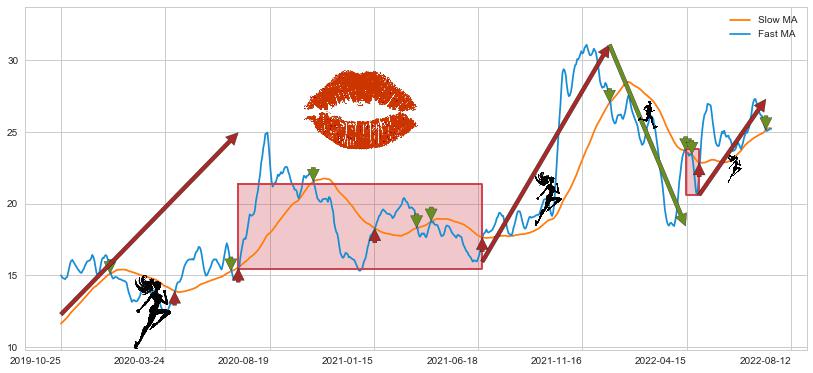 2021-12-22至2022-04-14 慢线与快线呈空头排列, 慢线与快线接触少,无缠绕