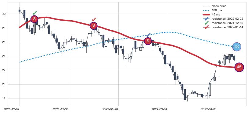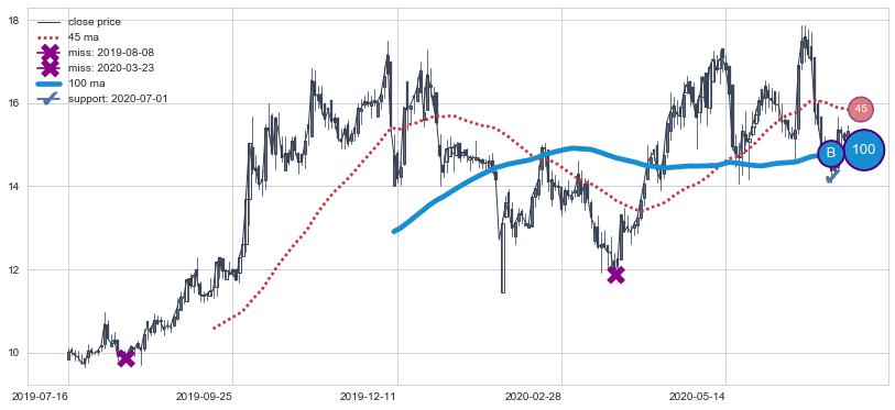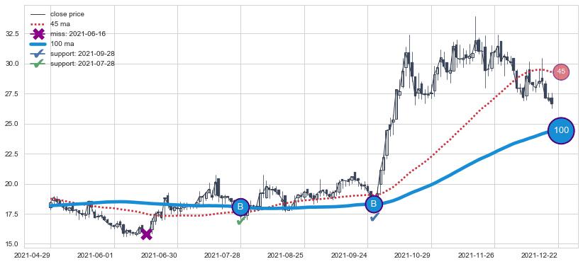⚂ 2022-03-08-日均线向下破位,2022-07-04-日重新上穿突破均线,均线支撑再次生效