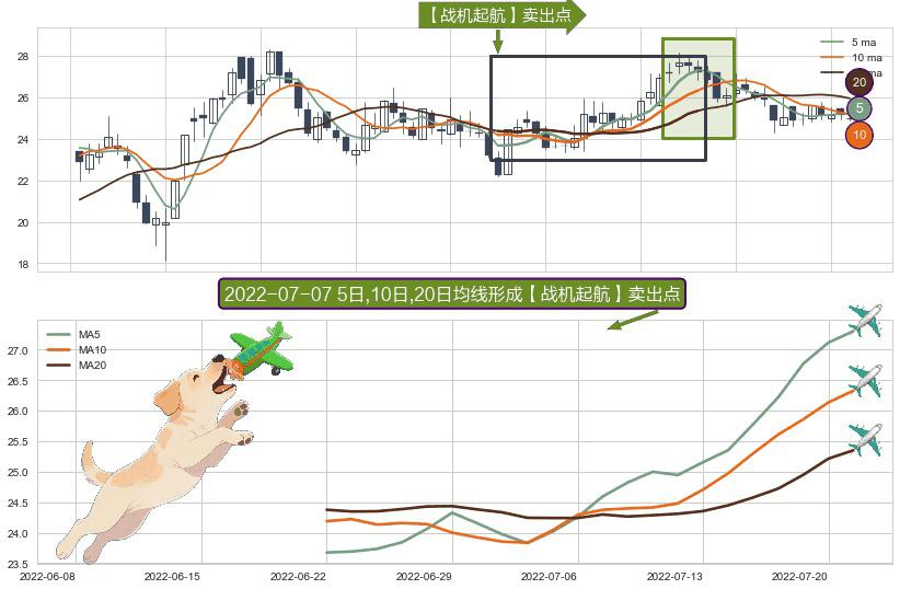 ⚀ 2022-06-22日-2022-07-21日显现 5日-10日-20日均线 【战机起航】卖出点 看空信号,后市看跌,卖出