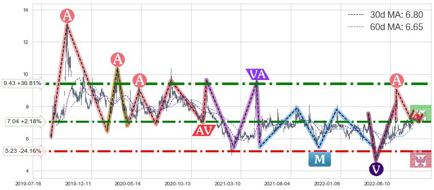♘ 支撑价格位5.23,可信任强度82.33%,距离最后交易2022-08-12形成的收盘价格6.89相差 -24.16%