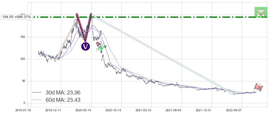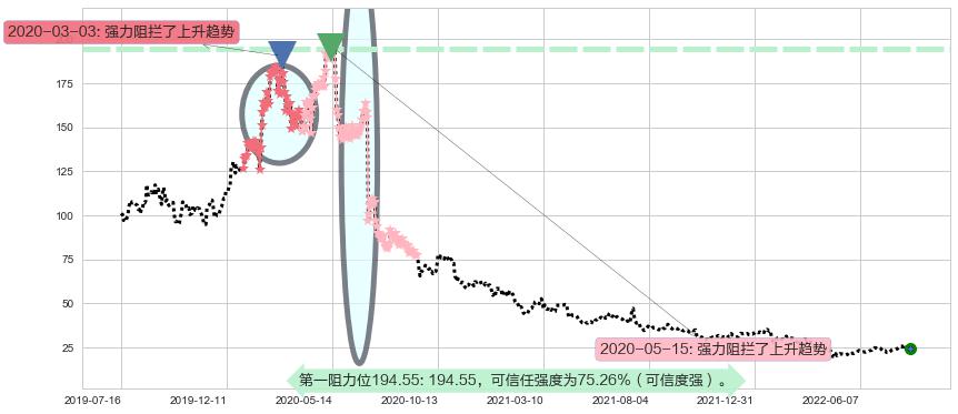 ♘ 阻力价格位194.55,可信任强度75.26%,距离最后交易2022-08-12形成的收盘价格24.43相差 +696.37%