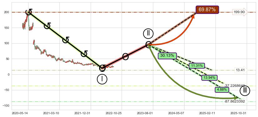 ➢ 高概率大级别循环下跌浪被破坏,反转向上(突破5浪起点)概率69.87%