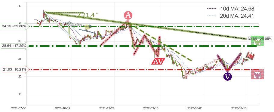 ♘ 阻力价格位28.64,可信任强度92.69%,距离最后交易2022-08-12形成的收盘价格24.43相差 +17.25%