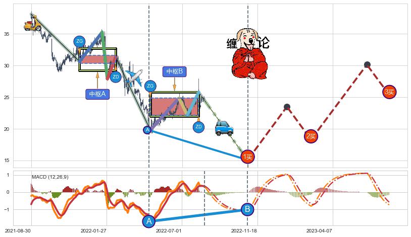 ➣ 【未完成】缠论 起点:2021-08-30, 完成第1中枢A,完成第2中枢B,到达2022-08-12