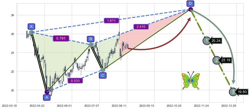 ➣ 未完成【蝴蝶】形态起点X: 2022-04-06, 已到达C点: 2022-07-12, 预测最终D点: 2022-11-01, 共138交易日