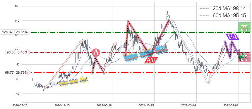 ♘ 支撑价格位96.08,可信任强度40.57%,距离最后交易2022-08-12形成的收盘价格96.52相差 -0.46%