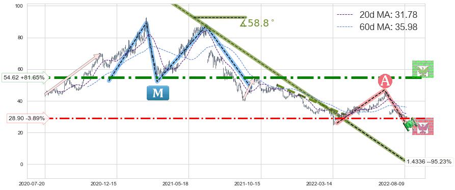 ♞ 20日均线:31.78,60日均线:35.98→ 快线<慢线