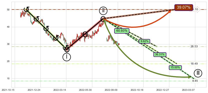 ➢ 循环浪继续向下【最低】位置(2023-03-14, 8.45),匹配聚类样本比例24.61%, 可能性概率15.00%