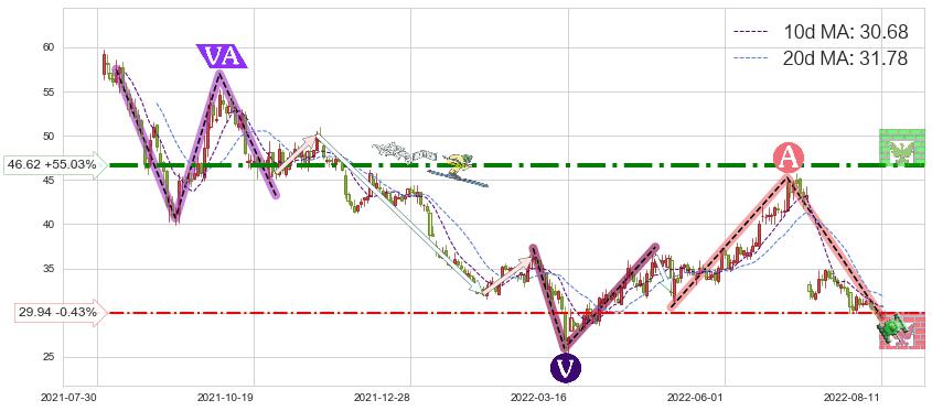 ♘ 阻力价格位46.62,可信任强度81.33%,距离最后交易2022-08-12形成的收盘价格30.07相差 +55.03%
