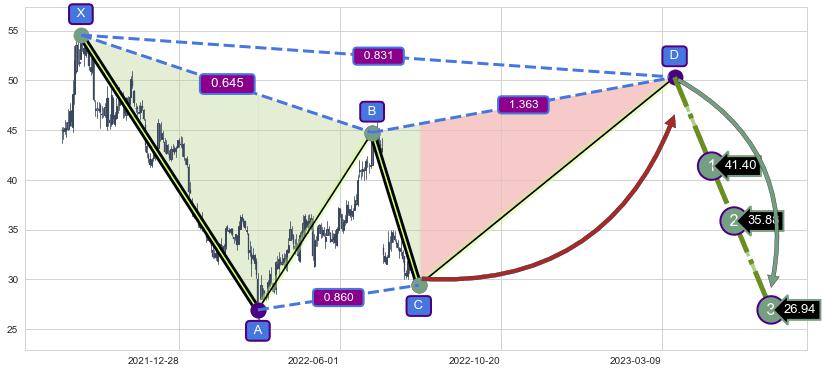 ➣ 未完成【伽利】形态起点X: 2021-09-27, 已到达C点: 2022-08-10, 预测最终D点: 2023-03-21, 共369交易日