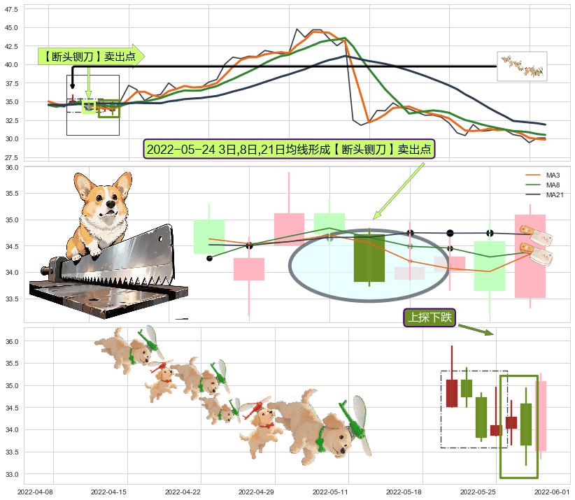| 2 🅚:两黑夹一红 ➕ 🎢:【断头铡刀】卖出点均线组合卖出点信号形成后,猜想后续支撑破位,后市持续下跌 ☞ 看空信号 ⇥ 【均线】交织【🅚线】⇥ 综合量化分数: 49 | > |