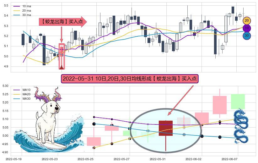 ⚀ 2022-05-31日显现 10日-20日-30日均线 【蛟龙出海】买入点 看多信号,后市看涨,买入