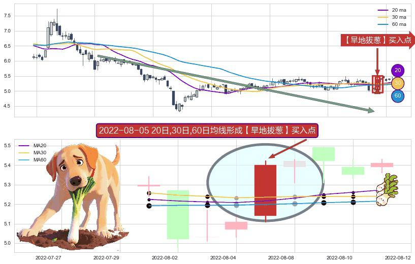 ⚀ 2022-08-05日显现 20日-30日-60日均线 【旱地拔葱】买入点 看多信号,后市看涨,买入