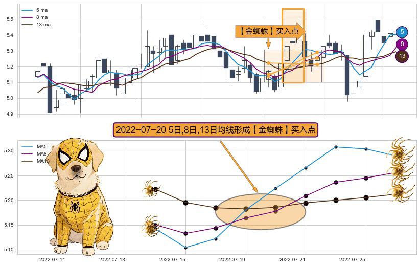 ⚀ 2022-07-20日显现 5日-8日-13日均线 【金蜘蛛】买入点 看多信号,后市看涨,买入