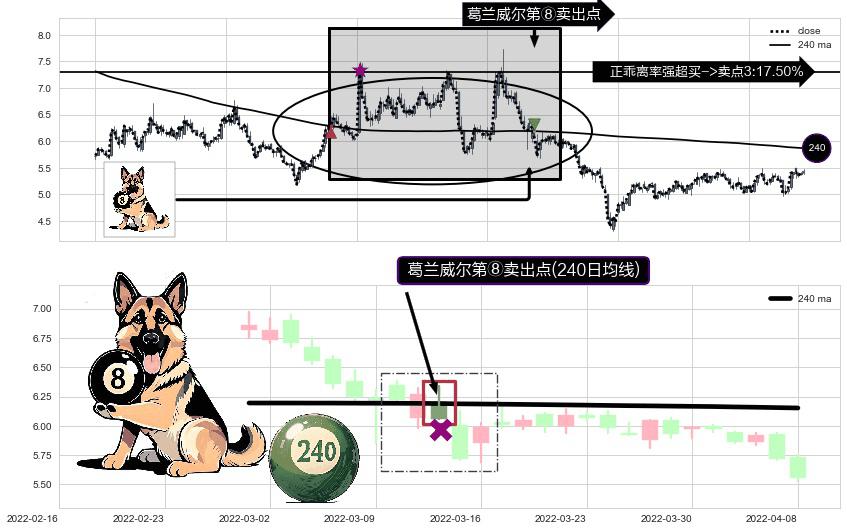 ⚀ 2022-03-14-日显现 葛兰威尔均线 240日均线 第⑧卖出点 下降趋势的中继信号,后市看跌,卖出信号