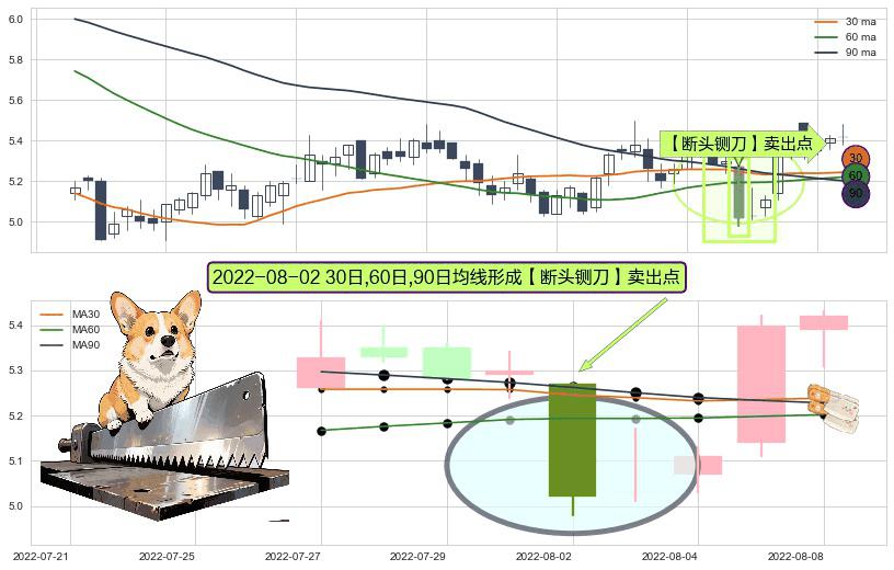 ⚀ 2022-08-02日显现 30日-60日-90日均线 【断头铡刀】卖出点 看空信号,后市看跌,卖出