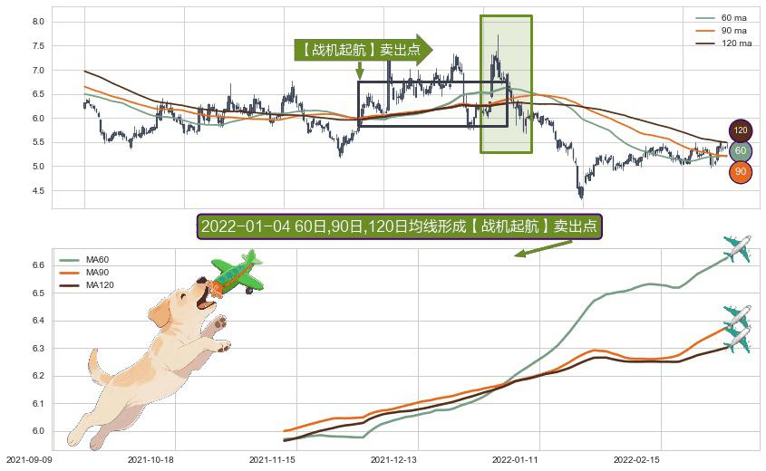 ⚀ 2021-11-11日-2022-03-02日显现 60日-90日-120日均线 【战机起航】卖出点 看空信号,后市看跌,卖出