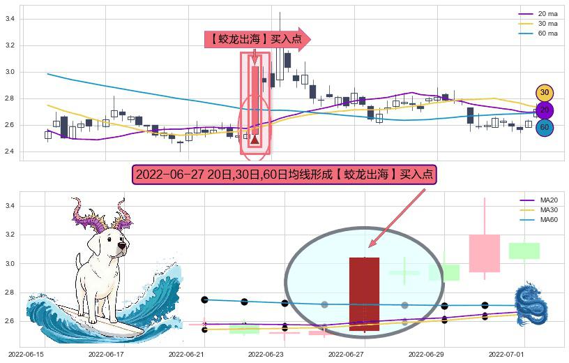 ⚀ 2022-06-27日显现 20日-30日-60日均线 【蛟龙出海】买入点 看多信号,后市看涨,买入